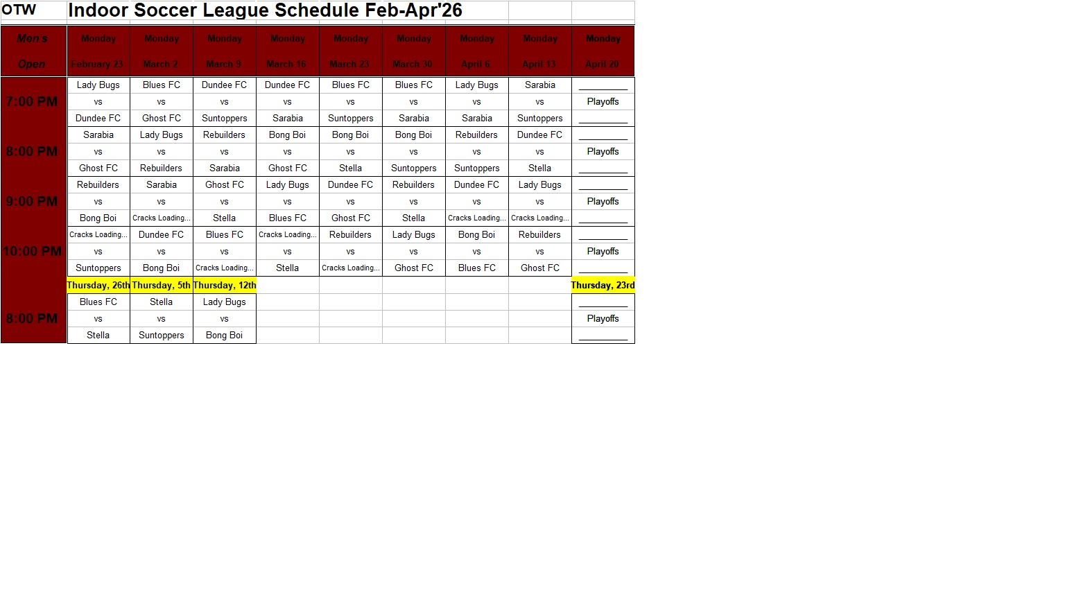 Men's Open- Complete Schedule